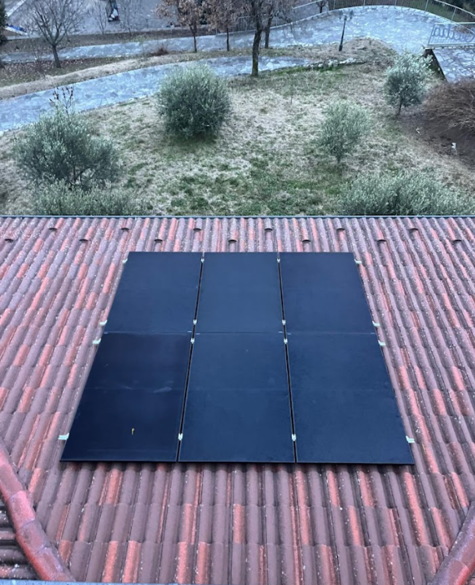 - 14 Moduli AIKO FullBlack 2 S da 460W con celle ottimizzate per una potenza di 6.44KW;